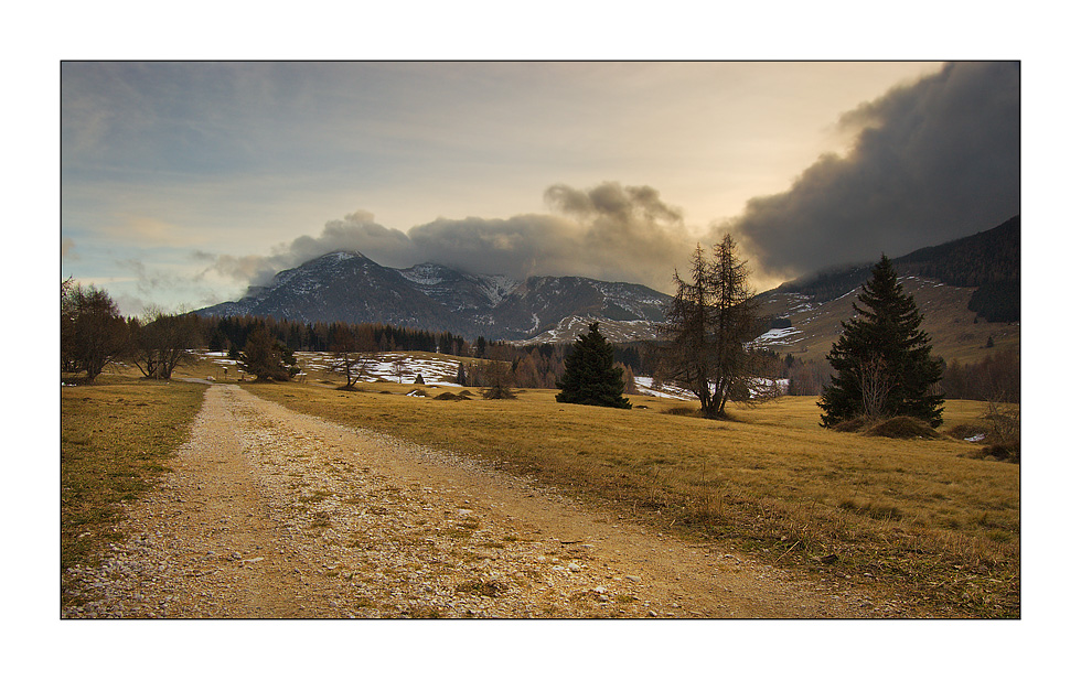 altro scatto splendido, le diagonali della strada fanno da piedistallo a questo splendido scorcio d'autunno, ottimamente ripreso e impreziosito dalla poca neve che dà una punta di freschezza e vivace luminosità alla scena.