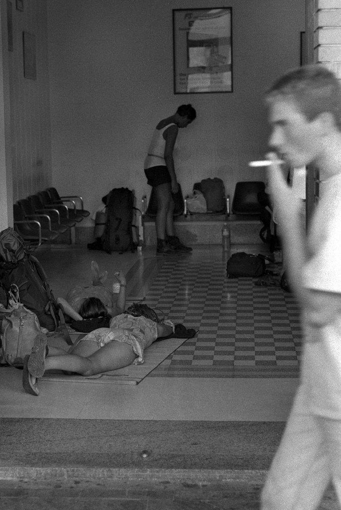 Bianco e nero convincente e dalla composizione interessante, in cui si sente un po' troppo il taglio e sinistra, nella misura in cui l'occhio non riesce ad avvolgere i bagagli delle due donne sdraiate completando così la parete bianca sempre a sinistra. Non male, ma l'anglismo naif del titolo incrina gran parte delle potenzialità emotive di uno scatto altrimenti ben riuscito.