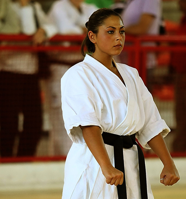 Giustamente, una foto di uno sport non minore ma meno conosciuto, dovrebbe descrivere lo sport stesso o almeno una sua parte. In questa foto non si capisce che tipo di gara questa atleta stia per fare. Dalla mia esperienza, potrei dire che visto il tipo di karategi (kimono) che indossa, sta per fare una gara di kata, no di certo kumite (combattimento). Orecchini anelli e piercing non si possono togliere all'ultimo momento. Wink