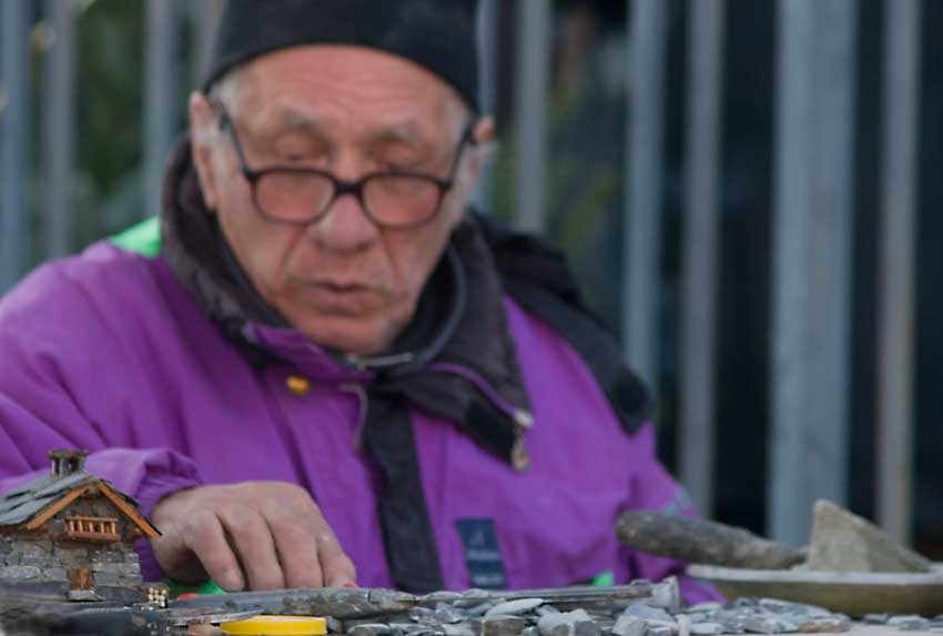 Il fuoco selettivo sul primissimo piano pone l'enfasi dello scatto sulla scena modellistica, in particolare sulla casetta di pietra all'inizio del fotogramma e successivamente sulla cazzuola da muratore in fondo a destra. L'uomo sullo sfondo è completamente fuori attenzione, sfuocato, riempiendo più di due terzi dell'intero fotogramma. Quel poco che si riesce a cogliere non partecipa di una particolare espressività. L'inquadratura troppo stretta e la scelta selettiva della messa a fuoco non aiutano la lettura del fotogramma specialmente da un punto di vista squisitamente street.