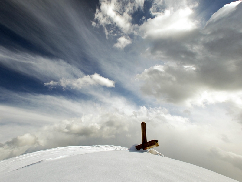 impera la natura in questa foto! Meravigliosa! Ottima l'inquadratura, che da respiro sia alla croce sepolta, ma pure al cielo per ora tranquillo..