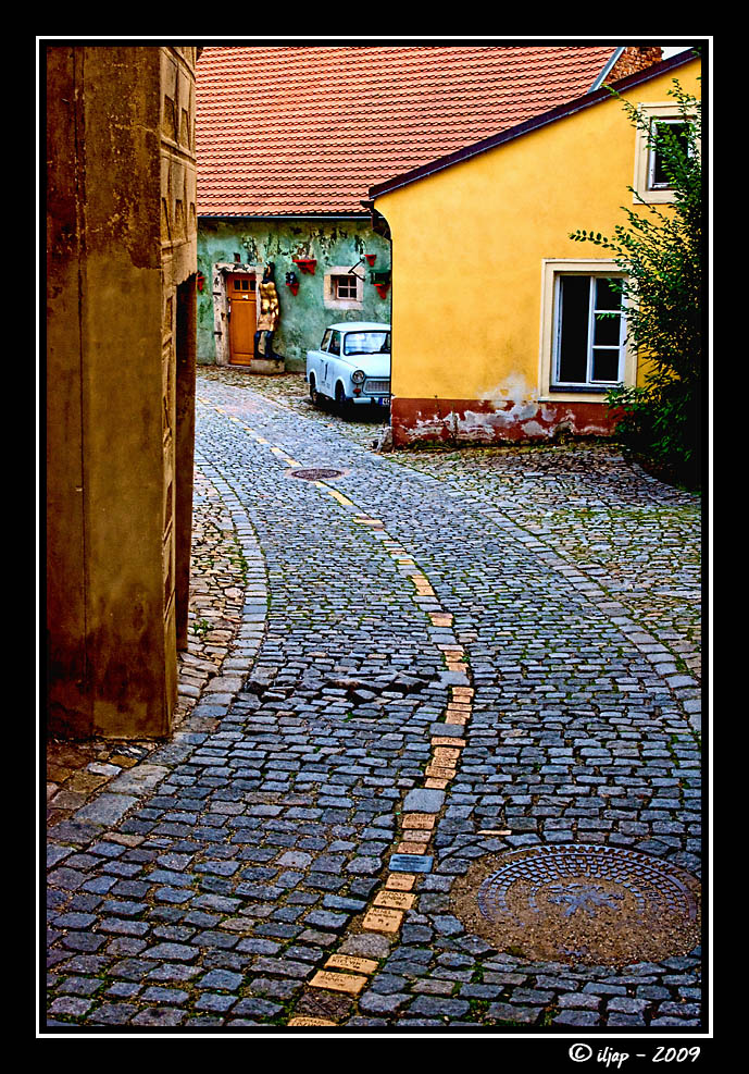 Piacevole questo vecchio paese con i suoi colori pastello e la strada in pave (spero si scriva così)