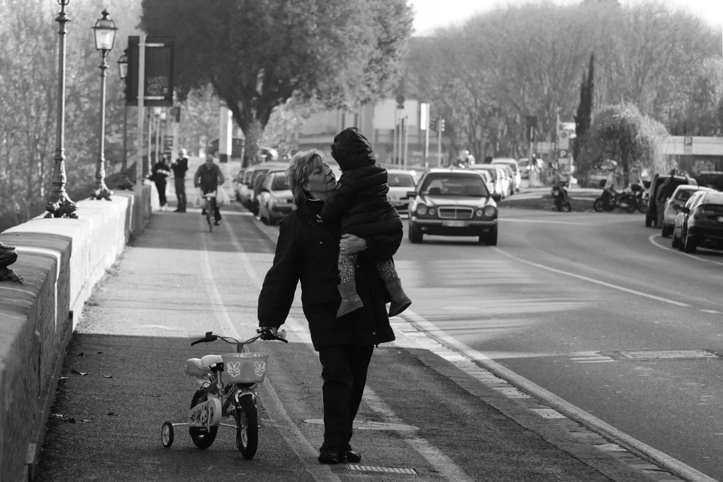 soggetto principale a fuoco, che cattura subito l'attenzione dell'oservatore all'interno della scena, interessante, soprattutto per la sua genuina quotidianità e al tempo stesso ricco di sentimento. Un buon contesto cittadino dona il giusto equilibrio ad un imagine piacevole e ben composta: la centralità del soggetto non infastidisce l'armonia dell'inquadratura. Buona la gestione della luce nonostante le difficili condizioni di scatto.