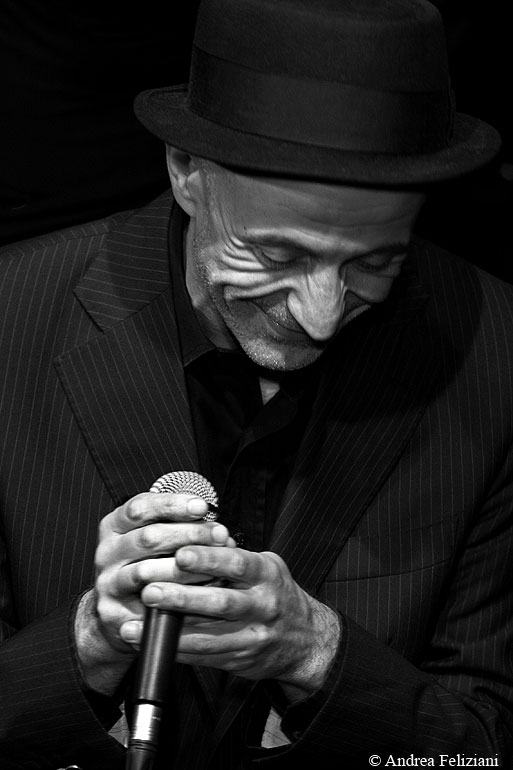 La magrezza delle mani ed il volto incanutito sembrano voler portare ad una espressione triste ma il sorriso che timido si apre rende l'idea di una serata soddisfacente...di un buon lavoro svolto....di appagamento musicale e non solo....