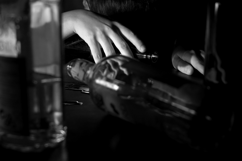 Penso che la composizione sarebbe stata più equilibrata senza la bottiglia sfuocata alla sinistra del soggetto, forse con un'inquadratura più stretta. Per il resto, mi piace la PDC e il livello di definizione... non so: è un bell'esperimento, denso di significato; forse varrebbe la pena ritentare, correggendo alcuni difettucci: ne potrebbe venir fuori una foto veramente molto molto bella.