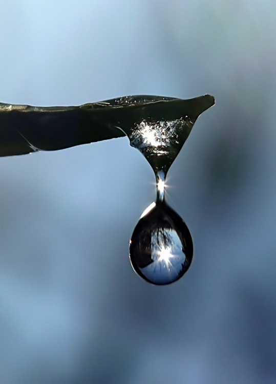 Indubbiamente la tua felicità per il momento colto è capibile, dovresti però rammaricarti per non aver avuto l'accortezza di mettere a fuoco all'interno della goccia.....il tempo prima dello stacco dalla foglia immagino tu l'abbia avuto. Credo si sia persa una bella occasione.....L'inverno è ancora lungo.