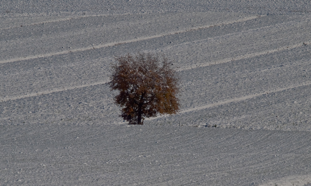 Ciao, credo che l'immagine ne avrebbe guadagnato con l'alberello inquadrato in posizione decentrata, e forse anche con formato panoramico.