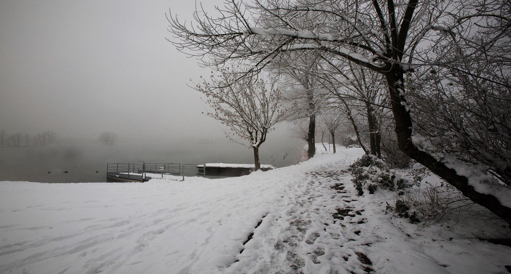 Già, gran bella atmosfera...il massimo sarebbe stato se ci fosse stata una persona che guardasse il lago su quella specie di molo oppure una persona che camminava nella neve.