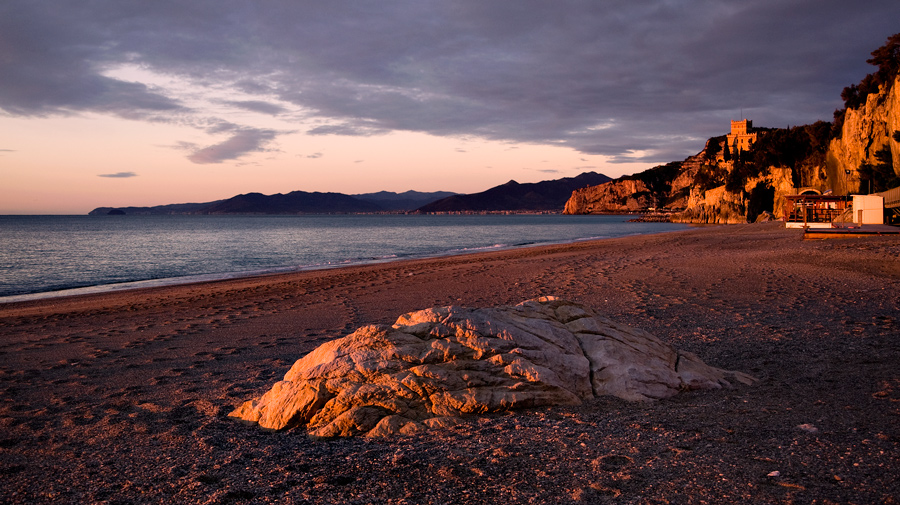 Bellissimi i riflessi del sole sul masso e sulla spiaggia Ok!