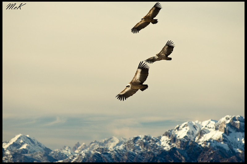 GRazie anche a voi per i commenti, nessun cadavere per fortuna, le foto sono state scattate non lontano dal lago di Cornino, provincia UD dove mi dicono esserci una colonia di grifoni, quel giorno ce n'erano circa una quindicina , credo a caccia, non sono un appassionato di questo tipo di foto però è stato molto bello il momento, son animali grandiosi e sentirli passare a pochi metri dalla testa dà veramente i brividi..........la foto è stata scattata verso meggiozorno da est verso ovest, a occidente sopra i monti c'era questa luce molto ambrata, effettivamente io ho forse un pò esagerato in pp con il tono del colore, però non si discosta di molto dalla luce e dai colori del momento dello scatto.  |