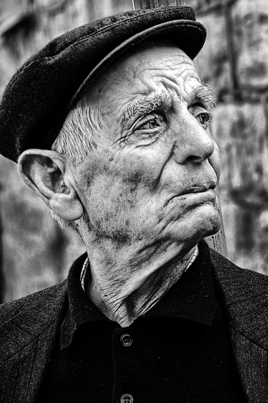 Ottimo ritratto in quanto ad espressione e marcatura dei contrasti, che rendono piu' vissuta la scena, un po' piu' di aria verso lo sguardo non guastava, forse il taglio orizzontale con soggetto a sinistra era piu' adatto. Ok!