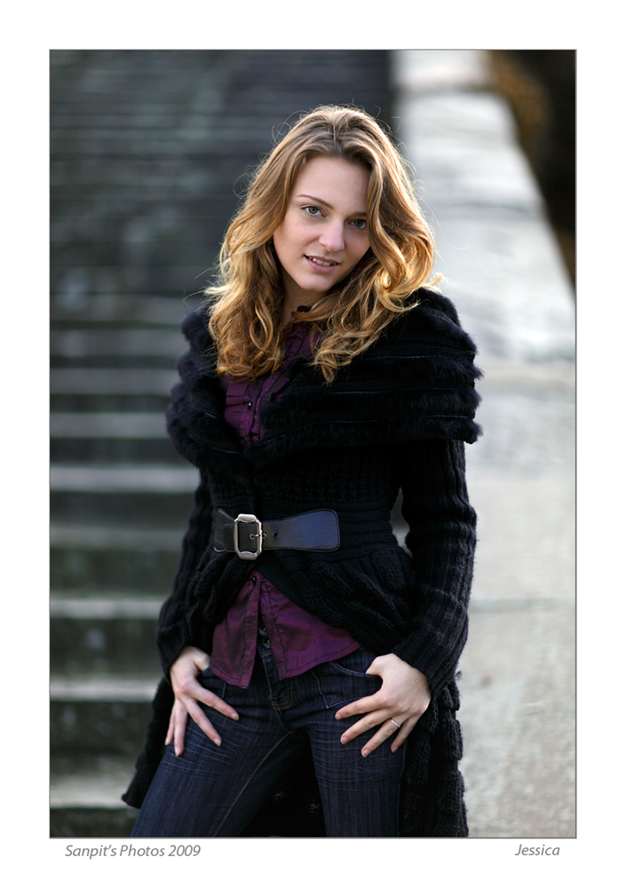 Luce ed ambientazione molto naturali. Anche l'espressione che cerca la disinvoltura mi sembra appropriata alla location così aperta.