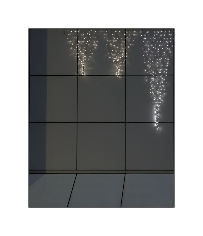 Credo che si tratti di una scelta questa decolorazione. Così facendo sei pervenuto ad un'immagine grafica piuttosto piatta e monocorde nonostante la presenza delle luci natalizie su quello scamplo di vetrate.