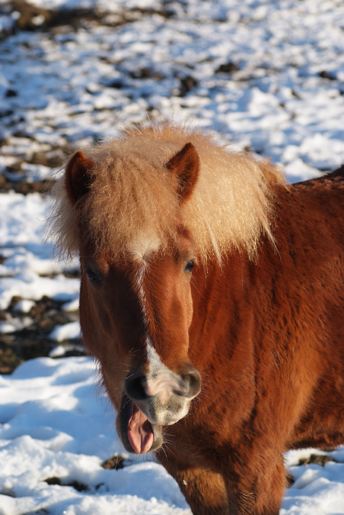 La smorfia ironica della bocca fa sì che il cavallo sembri quasi parlare.