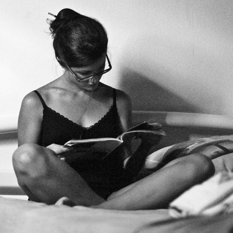 Ho scelto il taglio quadrato per accentuare la diagonale dello sguardo e per rimuovere alcuni elementi di disturbo (il letto era molto in disordine).