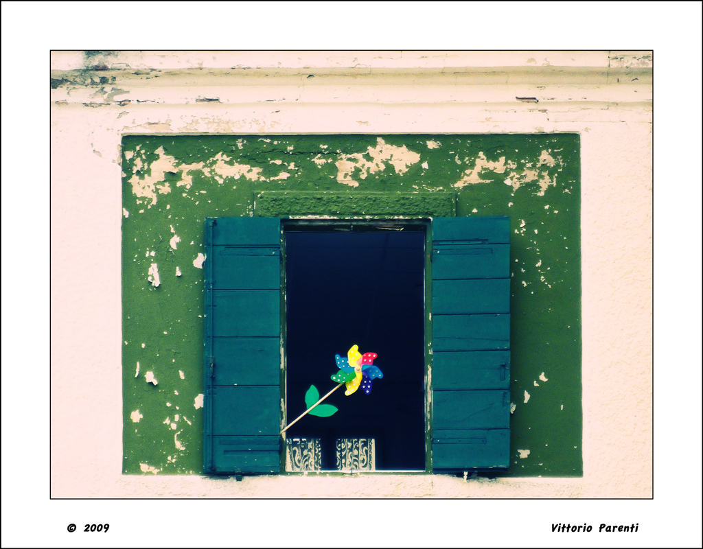 L'immagine è diretta ed essenziale, con la ripresa subito concentrata e focalizzata all'elemento principale.. è buona, in tale direzione, la vista della girandola colorata e tutta la finestra intorno a fare da cornice, addirittura doppia..