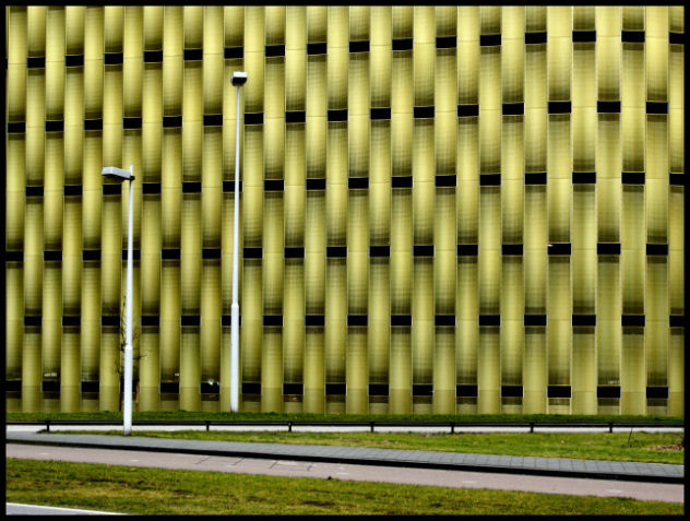 Guarda, non mi sento assolutamente di dare pareri tecnici, ma quello che psso dirti è che non riesco a distogliere lo sguardo... Sia dallo sfongo, che fa incrociare gli occhi, sia dai lampioni che spezzano il ritmo dell'edificio.