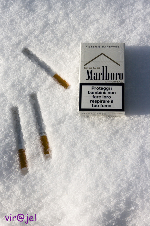 Prendo il pacchetto di sigarette dalla tasca della mimetica, nel momento in cui lo sto tirando fuori il pacchetto con le ultime tre sigarette mi si apre e tutte cadono sulla neve conficcandovisi...