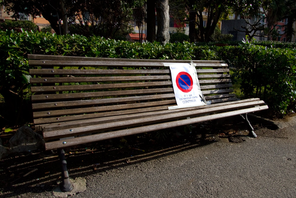 Invece, riflettendo un attimo, la foto ci pone di fronte a talune considerazioni circa l'opportunità di collocare delle panchine come questa lungo le strade di città dove magari proprio a bordo marciapiede è consentito sostare e nella giornata si alterna un via vai continuo di auto che "smoggano" i possibili usufruitori della panchina.