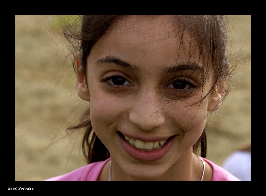 Per i capelli - eterna "dannazione" - specie in esterni (vento docet) cerca di direzionare il soggetto in modo opportuno in modo da ridurre il problema, come in questo caso, dove si vede che la piccola è in posa e quindi non è stata ripresa in un momento casuale.