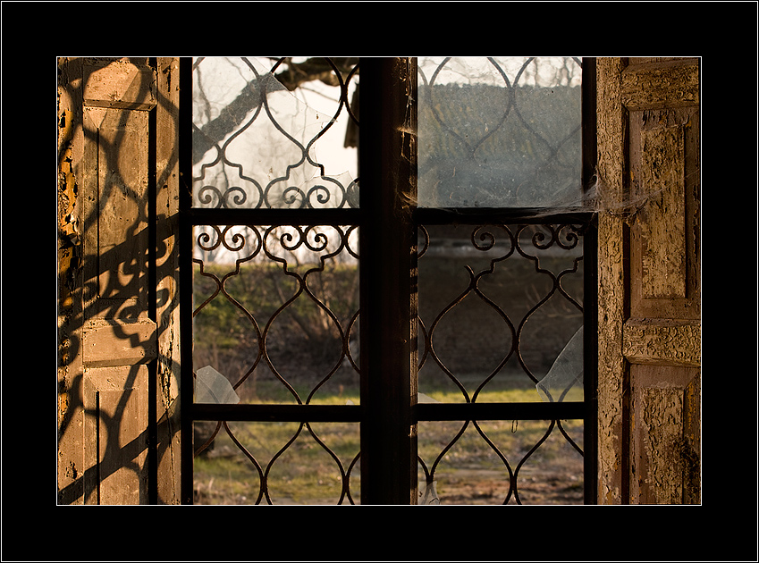 Un'immagine piena di arabeschi, sull'anta di destra come scrostature dovute al tempo, su quella di sinistra come ombre e sulla finestra come motivo decorativo, resi benissimo grazie ad una gestione (complicata) della luce che ti ha costretto ad una triplice esposizione per recuperare ogni dettaglio. Si respira qui l'atmosfera delle vecchie case di campagna abbandonate che tu indaghi con occhio curioso ed approccio intimistico, inteso come naturale intimità tra te e questo mondo rurale.