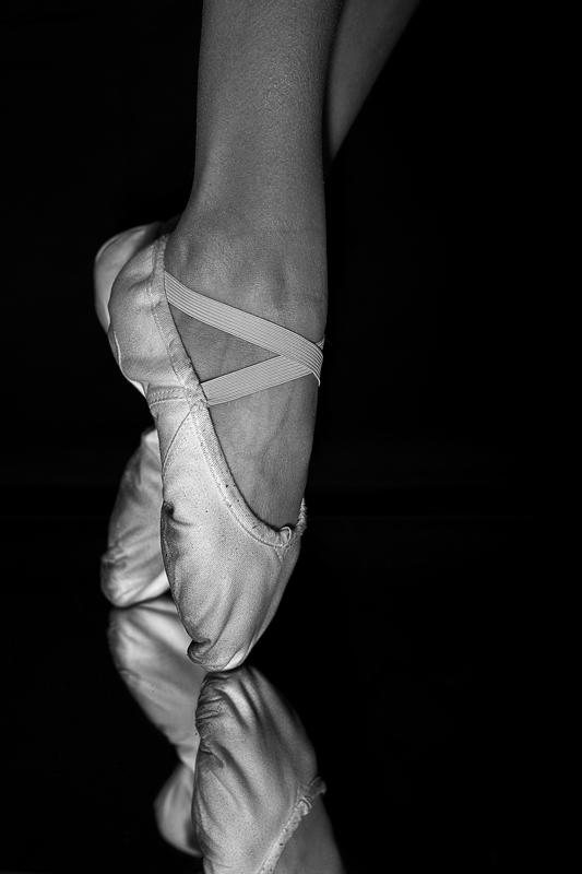 Visto che la ballerina non indossa delle "Punte" ma delle mezze-punte, la foto è stata scattata in orizzontale (cioè con la ballerina sdraiata a terra) e poi girata in PP?