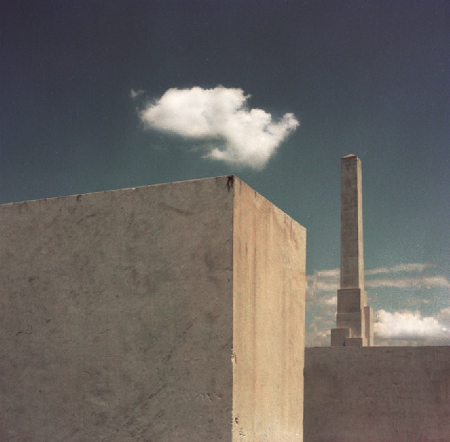 ..la compressione e/o scansione ha fatto dei bei danni..ciò nonostante è davvero una bella immagine...metafisica, mi ricorda certe atmosfere dei quadri di Magritte...soprattutto la nuvola...