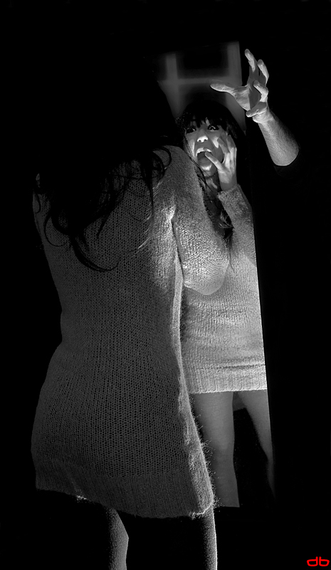 L'idea non mi dispiaceva però non sei riuscito a rendere bene due particolari a mio avviso: uno è la manica della maglia che si vede e toglie parte del pathos che poteva avere la scena; due è il fatto che il braccio si capisce troppo che proviene dal lato dello specchio e rende un po' casalingo il tutto. In post produzione direi che hai lavorato bene - annerire il tutto era un'ottima scelta Wink