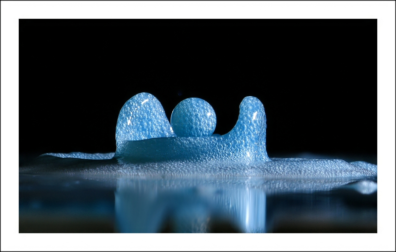 La goccia centrale è così sferica in origine, in PP ho solo aumentato contrasto, saturazione e annerito maggiormente alcune parti dello sfondo.