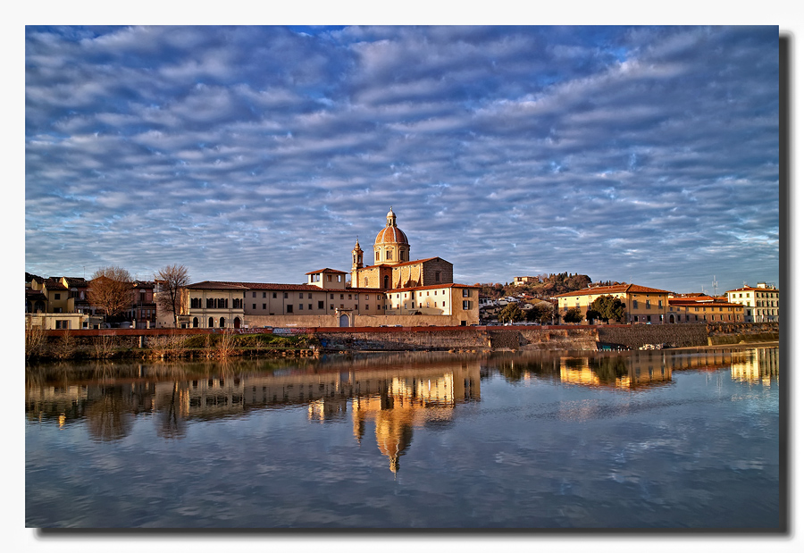Proprio bella con questo cielo pomellato e il suo riflesso nell'acqua a specchio, e le architetture nitide come scolpite nel cristallo. Un ottimo scatto.