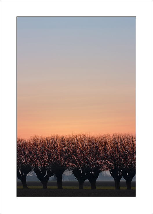 ottima gestione del colore, ottime geometrie, davvero molto molto bella la variazione dei colori del cielo fino ad arrivare ad i rami spogli degli alberi. Complimenti. La trovo anche molto comunicativa, infonde tanta tanta serenità Ok! Wink