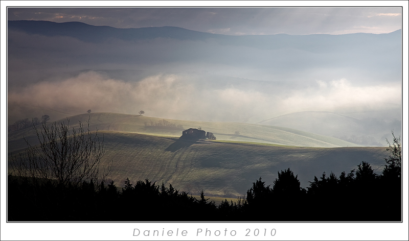 Molto avvolgente questo paesaggio campestre..., complice la luce e la nebbia si è creata una atmosfera degna di nota..., e il rudere piazzato li, quasi al centro calamita l'attenzione col suo vedo, non vedo dato dal controluce..., mi piace come hai gestito in maniera emozionale il tutto, complimenti. Ciao. _________________ Paolo |