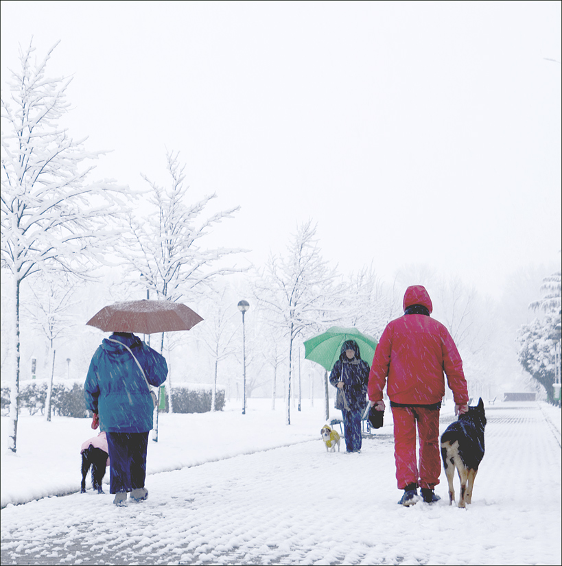 Trovo gradevole la composizione, dove spicca la stessa rappresentazione della coppia uomo/cane nelle figure rappresentate.