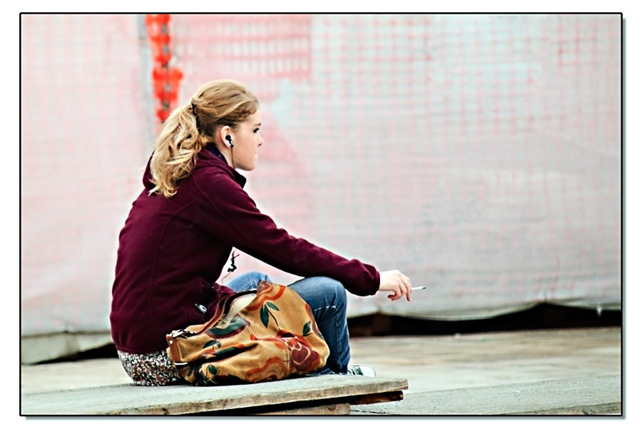 Temo sia + un effetto della compressione, anche perchè a risentirne sono state soprattutto alcune zone del frame (una di queste e il viso purtroppo),nn ho fatto alcun crop di questo scatto. Quanto alle pareti dello sfondo invece a me piacevano trovo che rafforzino il cromatismo dello scatto