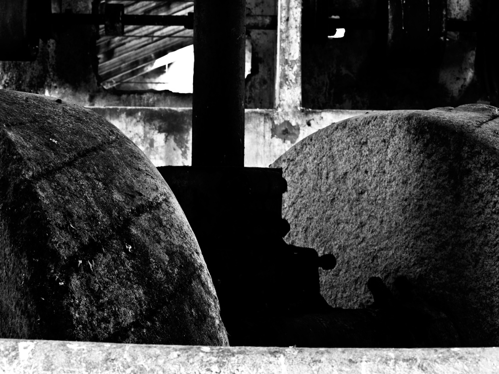 Il bianco in basso disturba un po', i neri li trovo molto chiusi e privi di dettaglio. L'elemento fondamentale, cioè la macina, si perde tra il nero e il bianco; oltretutto il taglio non credo vada bene, avresti potuto pensare un'inquadratura più ampia, per riprendere l'intera macina, oppure si poteva scegliere un dettaglio ma che fosse molto più curato e soprattutto significativo.