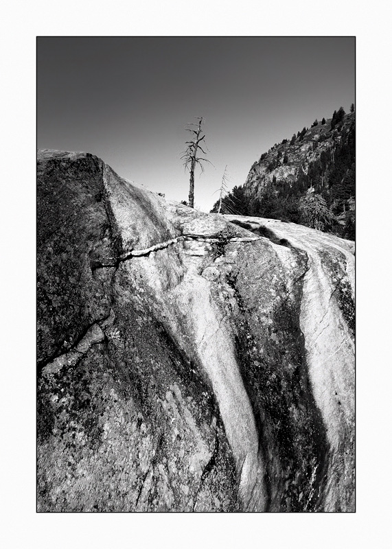 Al di la del buon b/n, quello che apprezzo qui è la compo molto emotiva..., l'albero piccolo e secco sopra questa maestosa roccia striata (più o meno quello che dice anche fiorenzo Smile )..., da all'immagine una certa intensità molto vicina a certi classici del genere. Ok!