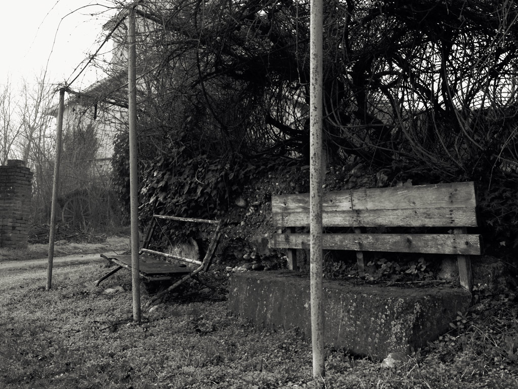 | inevitabilmente si è attratti dal bianco del cielo, così le due panchine, per me, sono una delle ultime cose che si notano. La luce credo che non fosse il massimo, è tutto abbastanza piatto. |