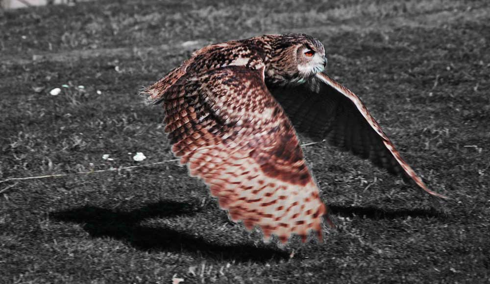 Non riesco a vedere il motivo per desaturare lo sfondo. Non credo che aggiunga granché, anzi forse con un bel verde il rapace risalterebbe ancora di più...forse.