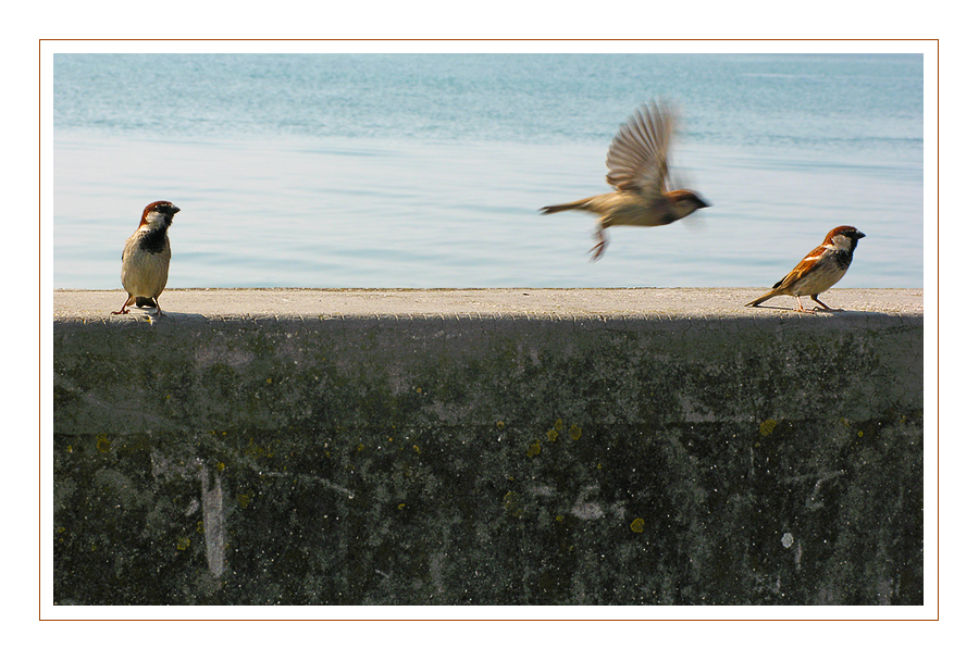 | sanpit ha scritto: | Mi piace questa composizione, in cui la posizione dei volatili ed il mosso di uno di essi caratterizzano in modo originale lo scatto.