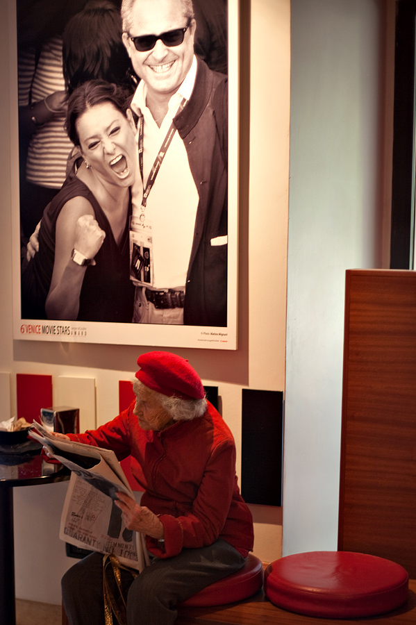 Io sarei stato tentato di convertirla in B/N, per uniformare tutti i soggetti della scena, quelli vivi e quelli "cartacei".. però avresti perso l'accoppiata del cappellino rosso col sedile, quindi per me và bene così Smile