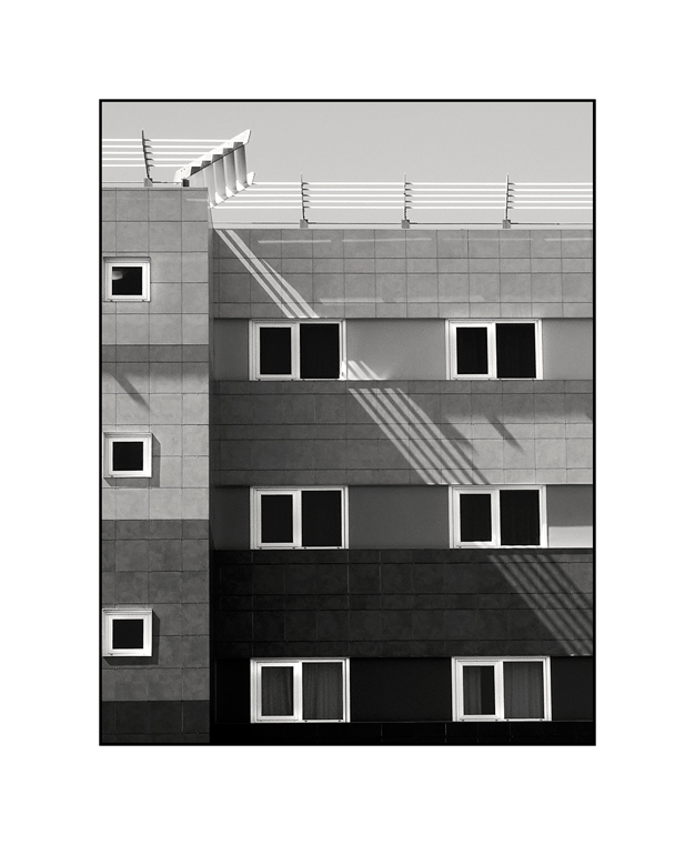 Bellissima la proiezione dell'ombra del parapetto, che sembra voler alleggerire anche quello scatto che c'è tra buio e luce sulla facciata per non far sembrare troppo netto il contrasto.