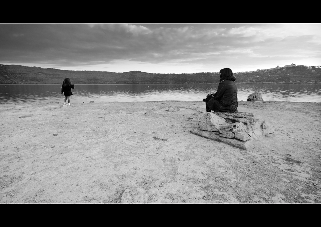 Mi piace la dialettica delle due figure ai due angoli del fotogramma. Forse per accentuarla avrei fatto ancora un passo avanti per escludere maggiormente il primo piano "vuoto". Buono il biancoenero che accentua la composizione.