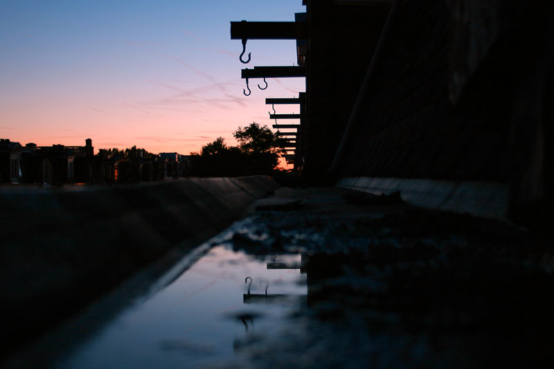Ma certo, credo davvero che tu sia stato attirato dalla singolare reiterazione di quei ganci metallici, un po' simbolicamente minacciosi e dal loro moltiplicarsi nei riflessi. Però sono silhouettes sporcate anche dall'ntrico di alberi e con masse di nero incompleto che assorbono tutt'intorno attenzione.