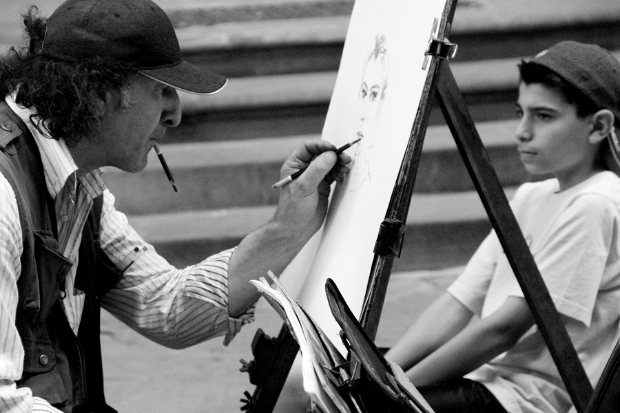 Non male l'attimo ripreso, nel quale l'artista è intento a disegnare; si avverte una sorta di un'analogia con l'atteggiamento sia del disegnatore che del disegnato, i loro sguardi sono concentrati, eseguono il proprio ruolo all'interno della scena...
