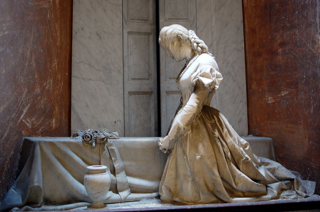 Mi permetto di suggeriti, in questo genere di foto, di far rientrare qualcosa di vivo, anche se reciso; per esempio, avresti potuto mettere sul sarcofago una rosa rossa.