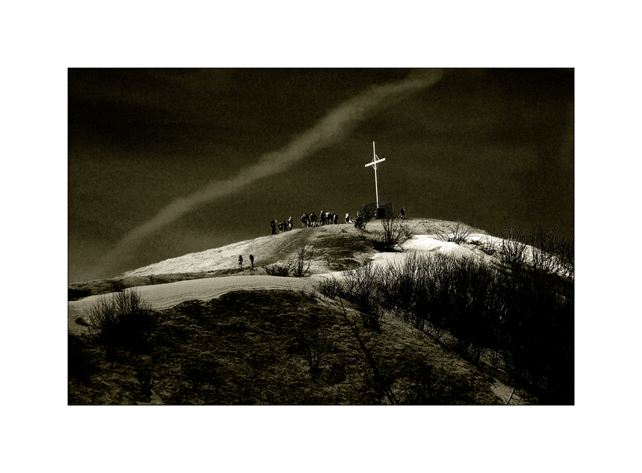 il cielo scuro, la luce, il buio, la croce.  _________________
