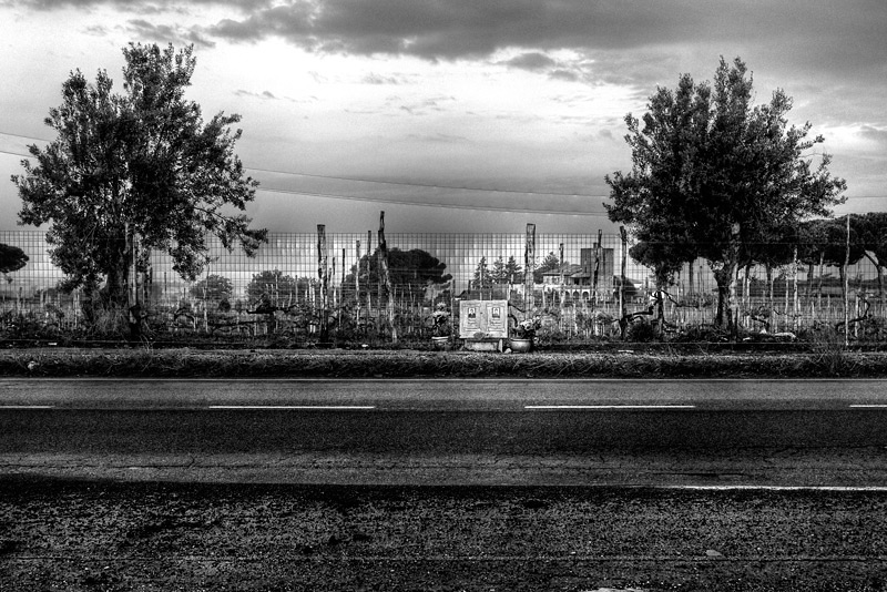 Formalmente penso si debba prestare attenzione a che le aree del cielo più chiare non vengano ad essere di intensità maggiore del cippo, per evitare di sminuirlo ulteriormente.