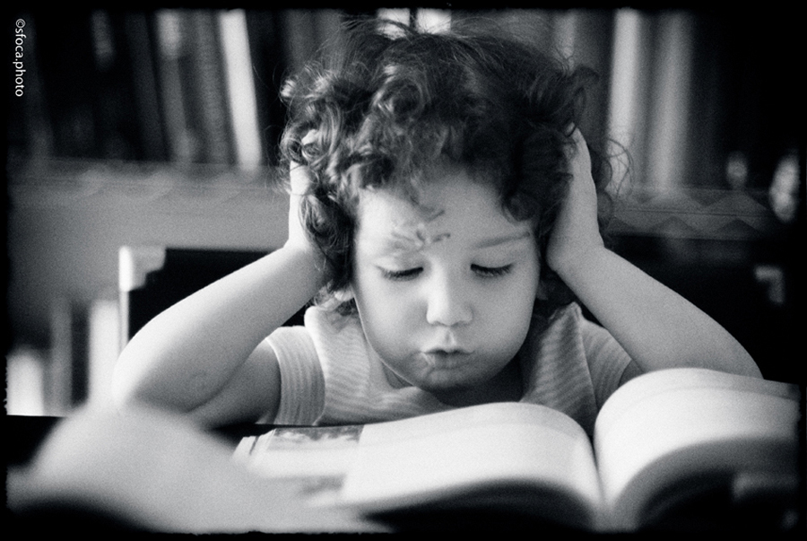 In verità, sarà per effetto degli interessi ultimi cui mi sto dedicando, intendo il mondo della fotografia nel cinema, ma il disturbo, l'accidente, mi richiama un po' l'inquadratura di quinta che del resto amo molto. Lei in buona sostanza sta imparando, "dialogando", con i libri. E la macchina fotografica è in scena, tra le cose. Lo sfocato, la vignettatura li leggo non come elementi di disturbo, nè di contorno ma di enfatizzazione della scena. Almeno questo era nelle mia intenzioni.