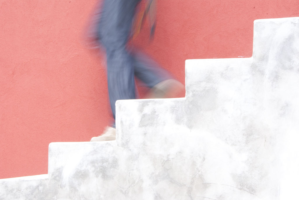 Una foto davvero graziosa e piacevole nell'accostamento cromatico delicato e soffuso. Buona anche la ripartizione dello spazio del fotogramma in due parti uguali fra scale e murao di fondo. Essenziale la cornicetta. Benem bene. Ciao Tiziano