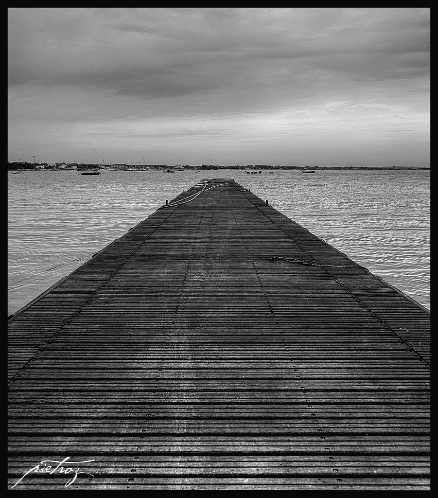 Il futuro non è poi così oscuro: oltre il molo c'è un breve tratto di mare, con quelche barca, e poi di nuovo la costa.
